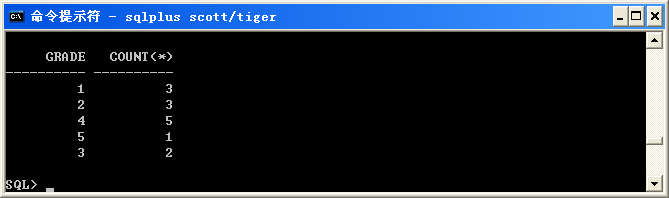 select grade, count(*) from (select empno, ename, grade from emp e join salgrade g on e.sal bet ween g.losal and g.hisal) group by grade