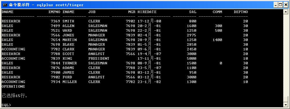 Select d.dname, e.* from emp e right join dept d on e.deptno = d.deptno