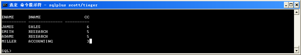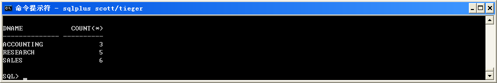 Select dname, count(e.empno) from emp e right join dept d on e.deptno = d.deptno group by dname having count(e.empno) > 0 |