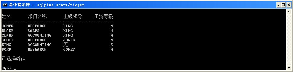 Select t.ename 姓名, d.dname 部門名稱, nvl(m.ename, '無') 上級經(jīng)理, grade 工資等級 from (Select * from emp where sal > (Select avg(sal) from emp)) t join dept d on t.deptno = d.deptno left join emp m on t.mgr = m.empno join salgrade g on t.sal between g.losal and g.hisal