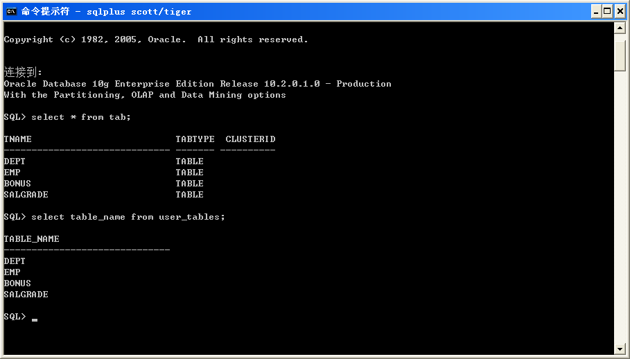 select table_name from user_tables;
