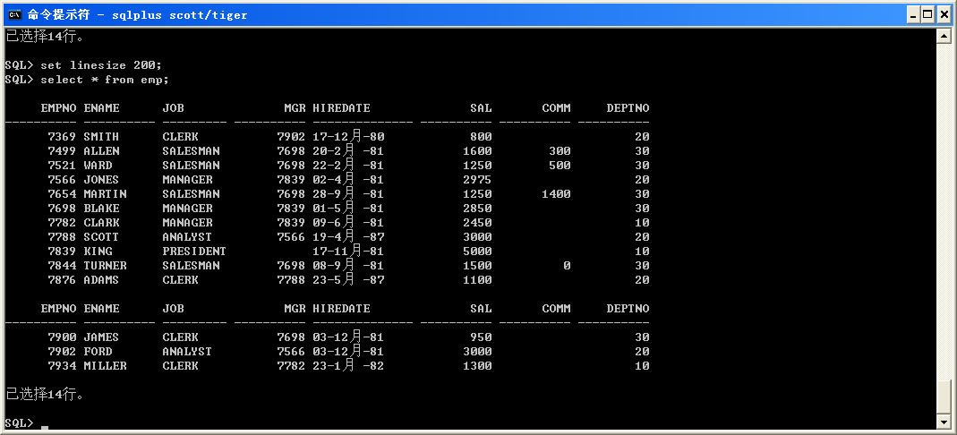 set linesize 200,表示設(shè)置一行為200個(gè)字符。