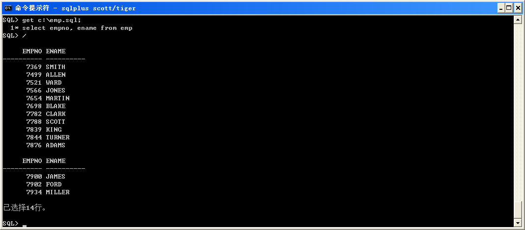 get可以將文件中的sql語句放到緩存區(qū)中,采用/或r或run,可以執(zhí)行。