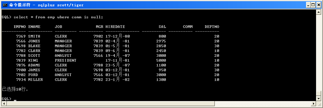 select * from emp where comm is null;