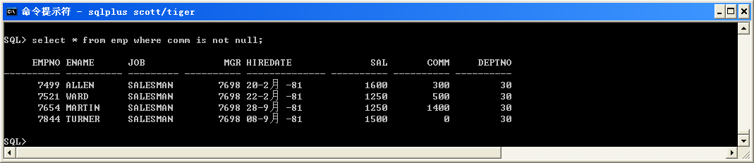 select * from emp where comm is not null;