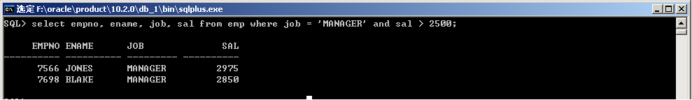 select empno, ename, sal from emp where job='MANAGER' and sal>2500;
