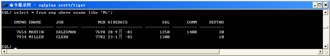 select * from emp where ename like ' M %';