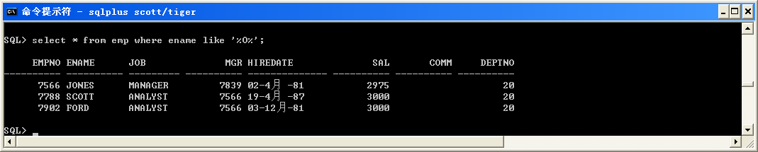 select * from emp where ename like '%O%';