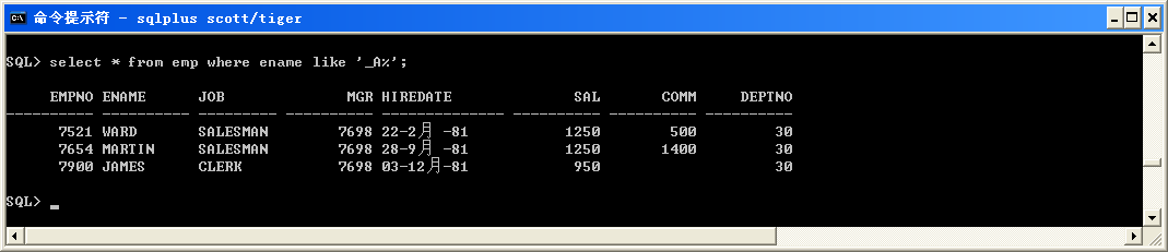 select * from emp where ename like '_A%';