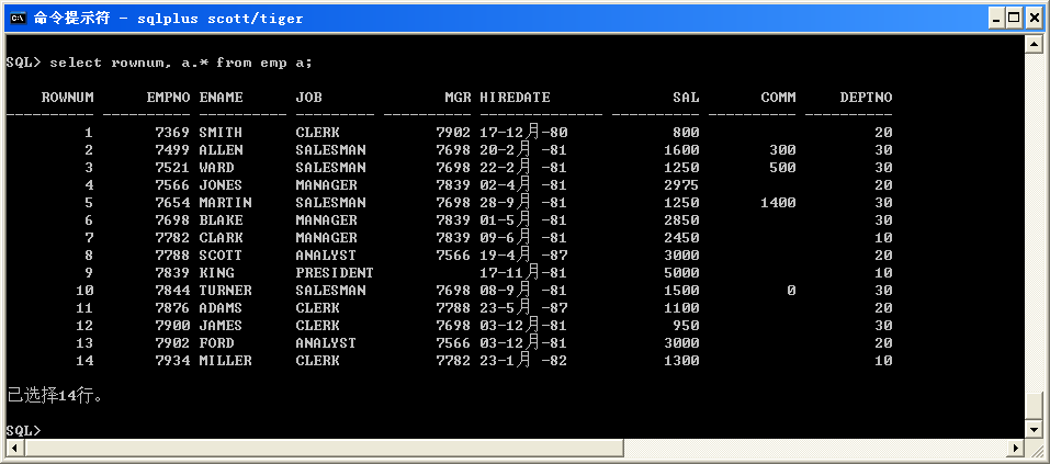 Oracle提供了rownum,rownum是一個(gè)隱含的(查詢結(jié)果集)字段,rownum是一個(gè)行號(hào),從1開(kāi)始。
