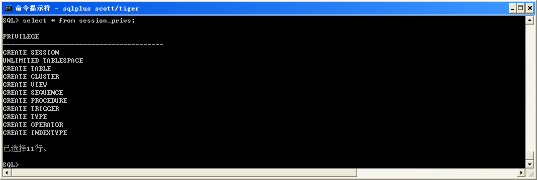 再次切換到scott用戶下,查看是否擁有創(chuàng)建視圖的權(quán)利