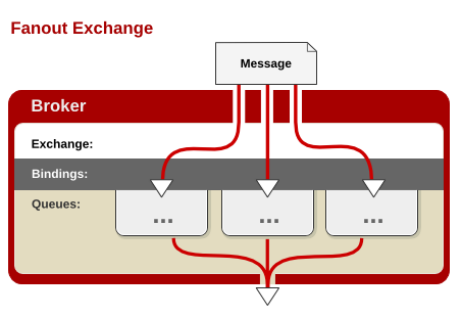 每個(gè)發(fā)到 fanout 類型交換器的消息都會分到所有綁定的隊(duì)列上去。fanout 交換器不處理路由鍵,只是簡單的將隊(duì)列綁定到交換器上,每個(gè)發(fā)送到交換器的消息都會被轉(zhuǎn)發(fā)到與該交換器綁定的所有隊(duì)列上。很像子網(wǎng)廣播,每臺子網(wǎng)內(nèi)的主機(jī)都獲得了一份復(fù)制的消息。fanout 類型轉(zhuǎn)發(fā)消息是最快的。