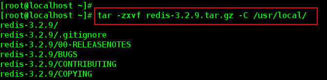 B、 解壓 redis-3.2.9.tar 到 usr/local 目錄