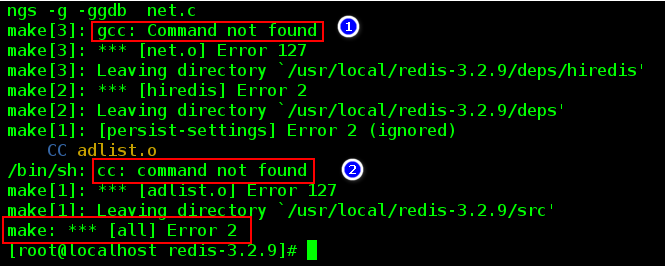 ● 錯(cuò)誤一:gcc 命令找不到,是由于沒(méi)有安裝 gcc 導(dǎo)致解決方式:安裝 gcc 編譯器后在執(zhí)行 make 命令