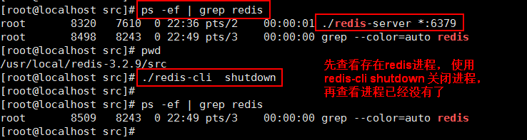 切換到 redis-3.2.9/src/ 目錄,執(zhí)行 ./redis-cli shutdown