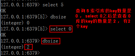 例:先查索引 5 的 key 個(gè)數(shù), 再查 0 庫(kù)的 key 個(gè)數(shù)