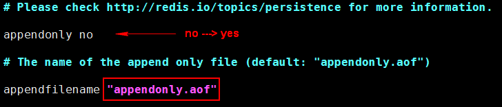 ①:appendonly:默認是 no,改成 yes 即開啟了 aof 持久化