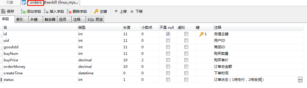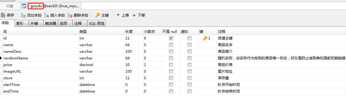 將07-SecKill\resources目錄下的建表語(yǔ)句(goods.sql和orders.sql)拷貝到Navicat中執(zhí)行