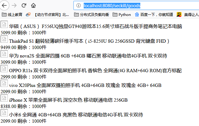 ? 運行15-seckill-web的Application,瀏覽器輸入http://localhost:8080/seckill/goods查看效果
