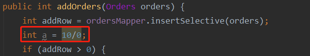 在15-seckill-service中將OrderServiceImpl中的addOrders方法中構(gòu)建一個(gè)異常