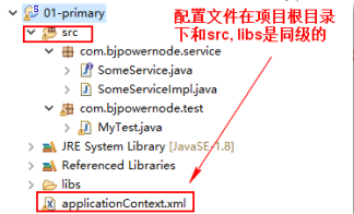 若 Spring 配置文件存放在項目的根路徑下,同樣使用 FileSystemXmlApplicationContext 實現(xiàn)類進行加載。