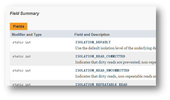 這些常量均是以ISOLATION_開頭。即形如ISOLATION_XXX。