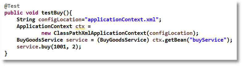 定義測試類MyTest。現(xiàn)在就可以在無事務(wù)代理的情況下運行了。