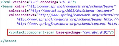 3、需要在 Spring 配置文件中配置組件掃描器,用于在指定的基本包中掃描注解。