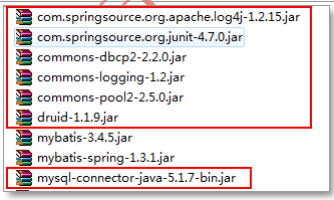 連接數(shù)據(jù)庫使用 Druid 連接池和 DBCP 連接池,所以導(dǎo)入 Druid 和 DBCP 的 jar 包。