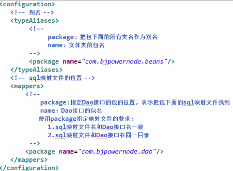 ● 這里對 mapper 映射文件的注冊,使用標(biāo)簽,即只需給出 mapper 映射文件所在的包即可。因?yàn)?mapper 的名稱與 Dao 接口名相同,可以使用這種簡單注冊方式。這種方式的好處是,若有多個映射文件,這里的配置也是不用改變的。當(dāng)然,也可使用原來的 標(biāo)簽方式。