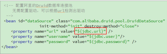 Spring 配置文件從屬性文件中讀取數(shù)據(jù)時,需要在的 value 屬性中使用${ },將在屬性文件中定義的 key 括起來,以引用指定屬性的值。