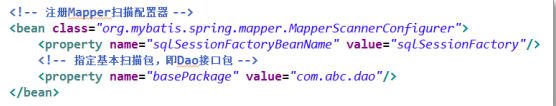 Mapper 掃描配置器 MapperScannerConfigurer 會自動生成指定的基本包中 mapper 的代理對象。該 Bean 無需設(shè)置 id 屬性。