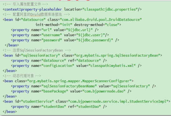 ● 主配置文件中不再需要數(shù)據(jù)源的配置了。因?yàn)閿?shù)據(jù)源要交給 Spring 容器來管理了。