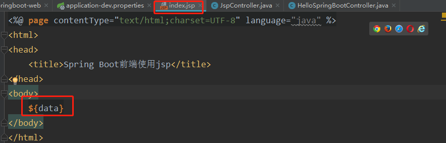 model.addAttribute("data","SpringBoot 前端使用JSP頁面!");