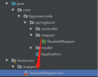 在resources目錄下新建目錄mapper存放映射文件,將StudentMapper.xml文件移到resources/mapper目錄下;