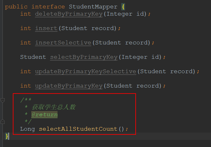 Long allStudentCount = studentService.queryAllStudentCount();