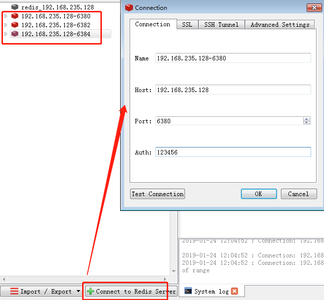 6. 在Redis Desktop Manager上創(chuàng)建三個連接,連接6380,6382,6384Redis服務器