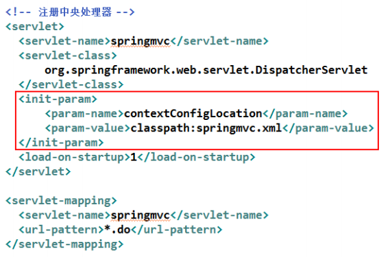 而一般情況下,該配置文件是放在類路徑下,即 src 目錄下。所以,在注冊中央調(diào)度器時,還需要為中央調(diào)度器設(shè)置查找 SpringMVC 配置文件路徑,及文件名。