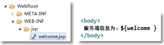 在 WEB-INF 目錄下新建一個子目錄 jsp,在其中新建一個 jsp 頁面 show.jsp。