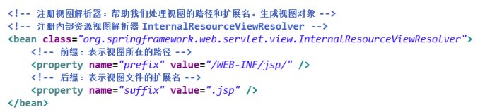 SpringMVC 框架為了避免對于請求資源路徑與擴(kuò)展名上的冗余,在視圖解析器 InternalResouceViewResolver 中引入了請求的前輟與后輟。而 ModelAndView 中只需給出要跳轉(zhuǎn)頁面的文件名即可,對于具體的文件路徑與文件擴(kuò)展名,視圖解析器會自動完成拼接。