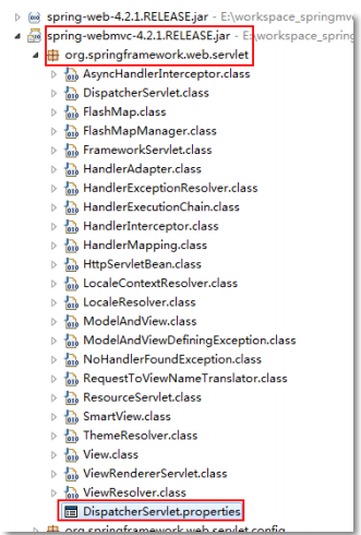 當(dāng)然不是!這些內(nèi)容均在 DispatcherServlet 的默認(rèn)配置 DispatcherServlet.properties 文件中被定義。這個(gè)文件與 DispatcherServlet 類(lèi)在一個(gè)包下,而且是當(dāng) Spring 配置文件中沒(méi)有指定配置時(shí)使用的默認(rèn)情況。