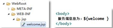 在 WEB-INF 目錄下新建一個(gè)子目錄 jsp,在其中新建一個(gè) jsp 頁(yè)面 welcome.jsp。