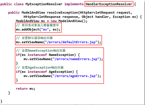 自定義異常處理器,需要實(shí)現(xiàn)HandlerExceptionResolver接口,并且該類需要在SpringMVC配置文件中進(jìn)行注冊(cè)。