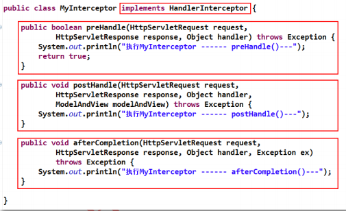 自定義攔截器,需要實(shí)現(xiàn) HandlerInterceptor 接口。而該接口中含有三個(gè)方法: