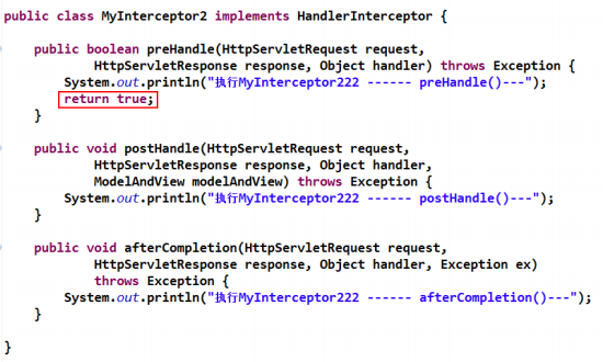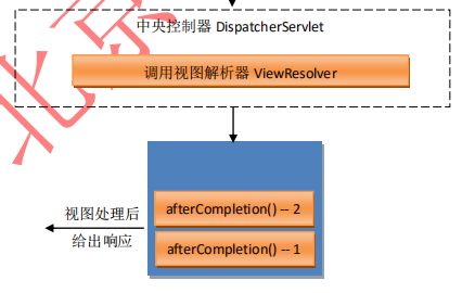 但在正常情況下,即所有的 preHandle()方法返回均為 true,且 doDispatch()方法沒(méi)有異 常發(fā)生的情況下,afterCompletion()方法是在視圖解析器后執(zhí)行的。