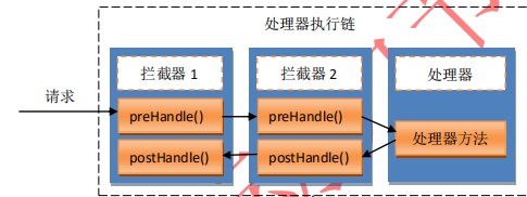 多個(gè)攔截器中方法與處理器方法的執(zhí)行順序如下圖: