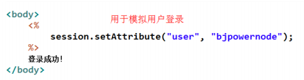 本例的登錄,由一個(gè) JSP 頁(yè)面完成。即在該頁(yè)面里將用戶信息放入 session 中。也就是說(shuō),只要訪問(wèn)過(guò)該頁(yè)面,就說(shuō)明登錄了。沒(méi)訪問(wèn)過(guò),則為未登錄用戶。
